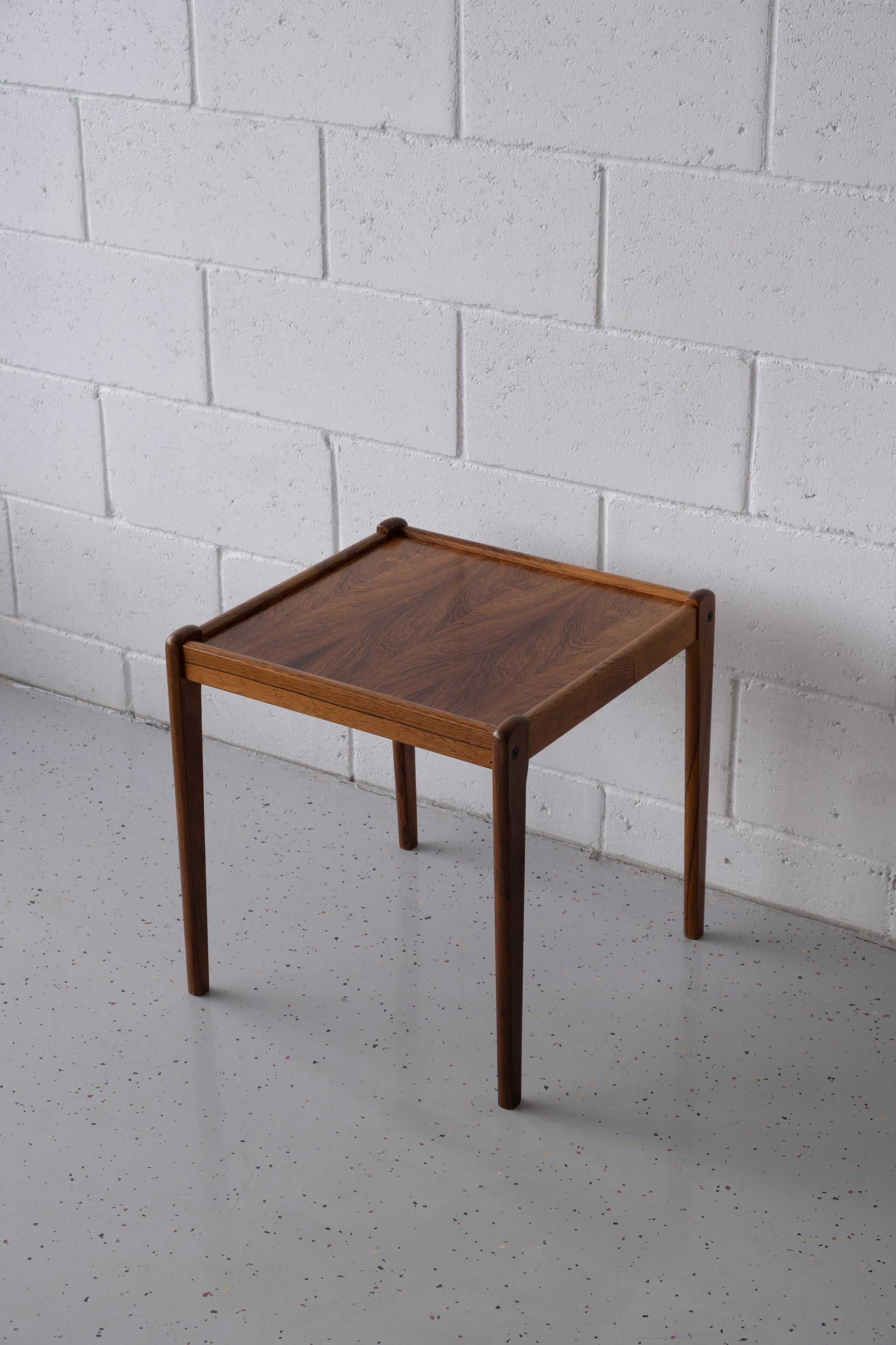 Elegant symmetrical Danish side table by Brdr. Furbo, crafted at Spøttrup Møbelfabrik. Features a rich rosewood grain and refined joinery details. A timeless and versatile mid-century piece.